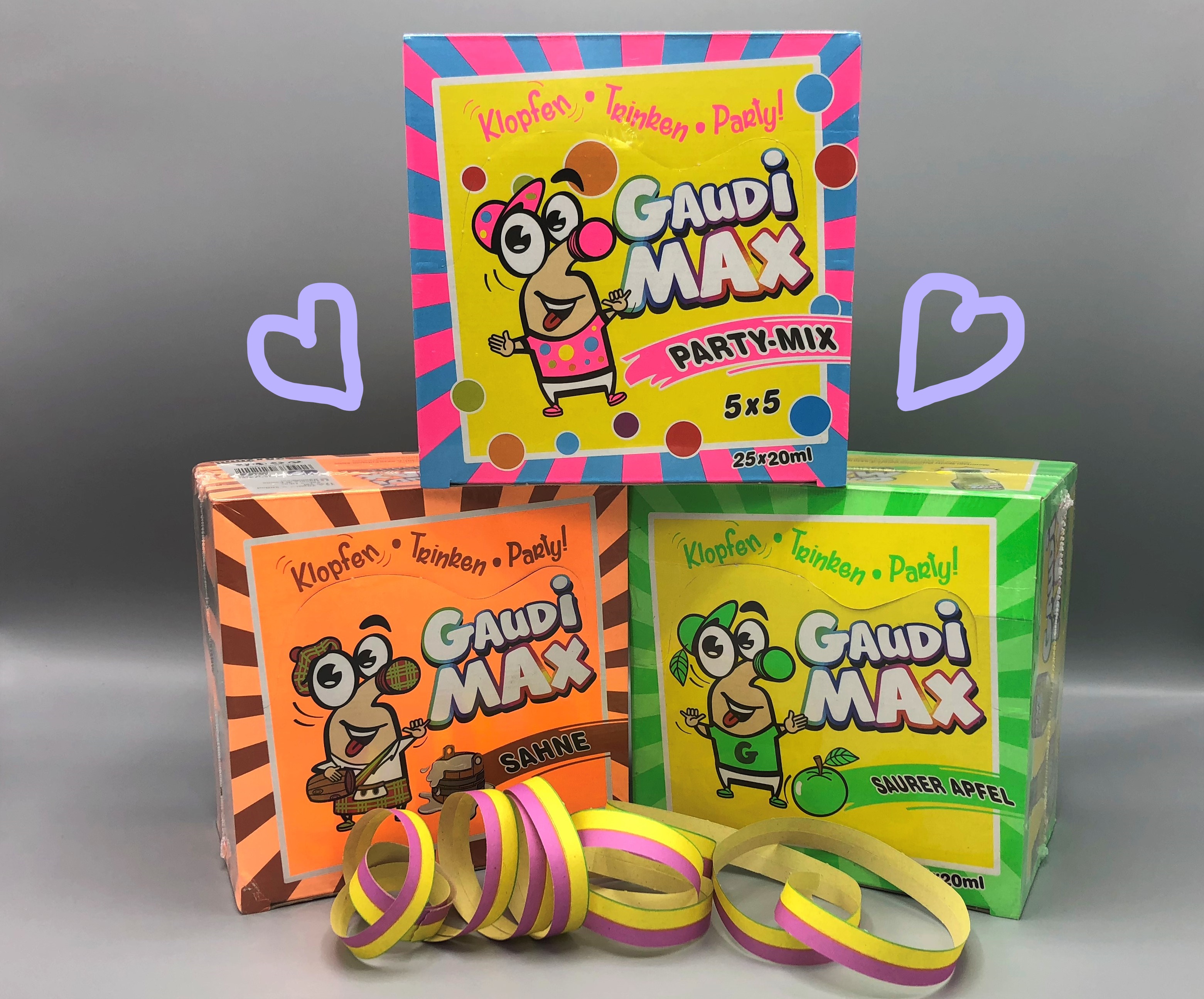 … klopft brav auf Tische. Gaudi Max Klopfer sind bei uns im Angebot. Ob der bunte Gaudi Max Mix oder der saure Apfel sowie der sündig süße Whiskey-Sahne Likör, alles bei uns zu haben. Pro Box mit 25 Fläschchen à 0,02 Liter spart ihr euch EUR 3,02. Statt EUR 14,90 zahlt ihr jetzt EUR 11,88 inkl. Steuern pro Box.