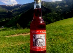 Auf der Alm da gibt’s ka Sünd aber Himbeer Limonade. Die war besonders herrlich als Kind nach einer anstrengenden Wanderung. In der urigen Hütte oder auf den Bänken vor der Almhütte ein gemütliches Platzerl gesucht und bestellt. Sobald die ersten Schlucke aus der Limonadenflasche mit einem Röhrl (Strohhalm) gezogen wurden, waren die Lebensgeister wieder geweckt. Für die rote Lippenpracht musste man das Himbeer Kracherl schon aus der Flasche trinken. Das Trinkglas war in der Kindheit eher verpönt. Diese Trinkart machte nur einen Himbeer Limonaden Bart und schaute, gelinde gesagt, blöd aus. So konnte man auch die Profis von den Laien unterscheiden. Zur Unterstreichung des Wissens, wie man es richtig macht, wurde zum Schluss die Himbeer Limonaden Zunge weit ausgestreckt. Tja auf der Alm da gibt’s ka Sünd :-).
